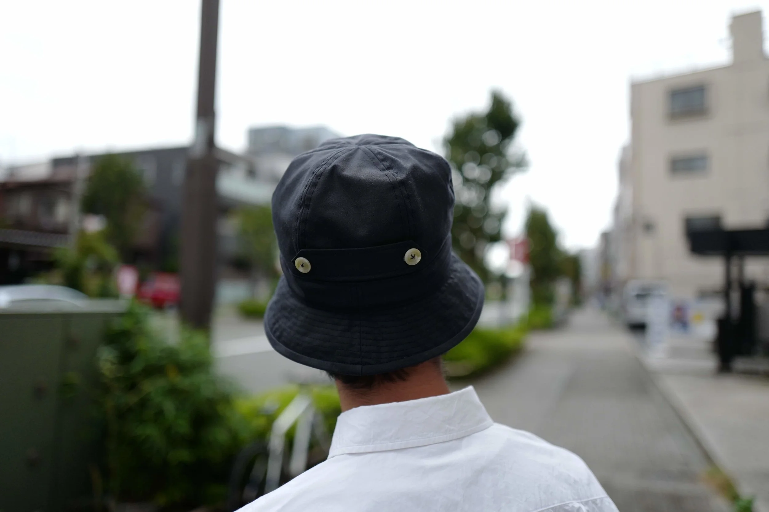 ハットは前を折り返すのも良い感じです。と、後ろのボタンも良いアクセントに。