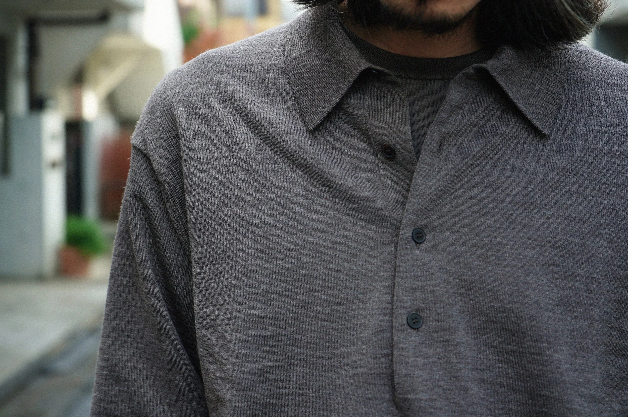AURALEE : SUPER HIGH GAUGE WOOL KNIT POLO / ¥46,200-
