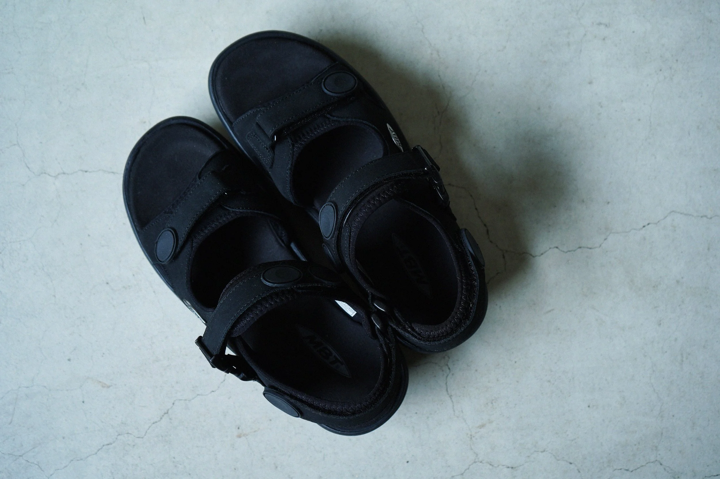 ヌバックのアッパーに、3点留めのマルチストラップ。