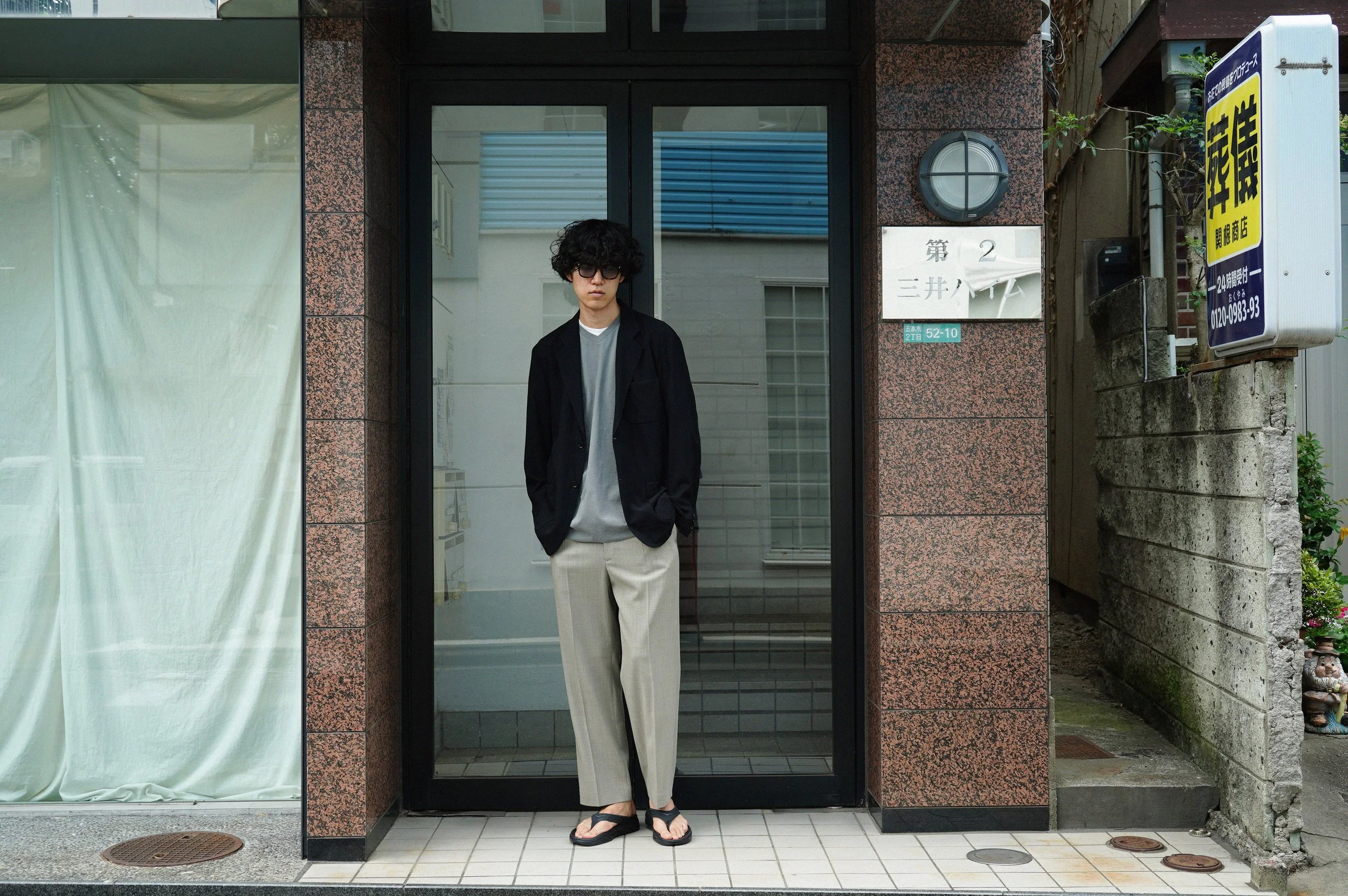 ドライなタッチで独特な清涼感があり、裁ち端がほつれない生地の特徴を踏まえ裾や袖口が切りっぱなしの仕様で、一般的なカットソーと比べ、ユニークな存在感のある一着です。