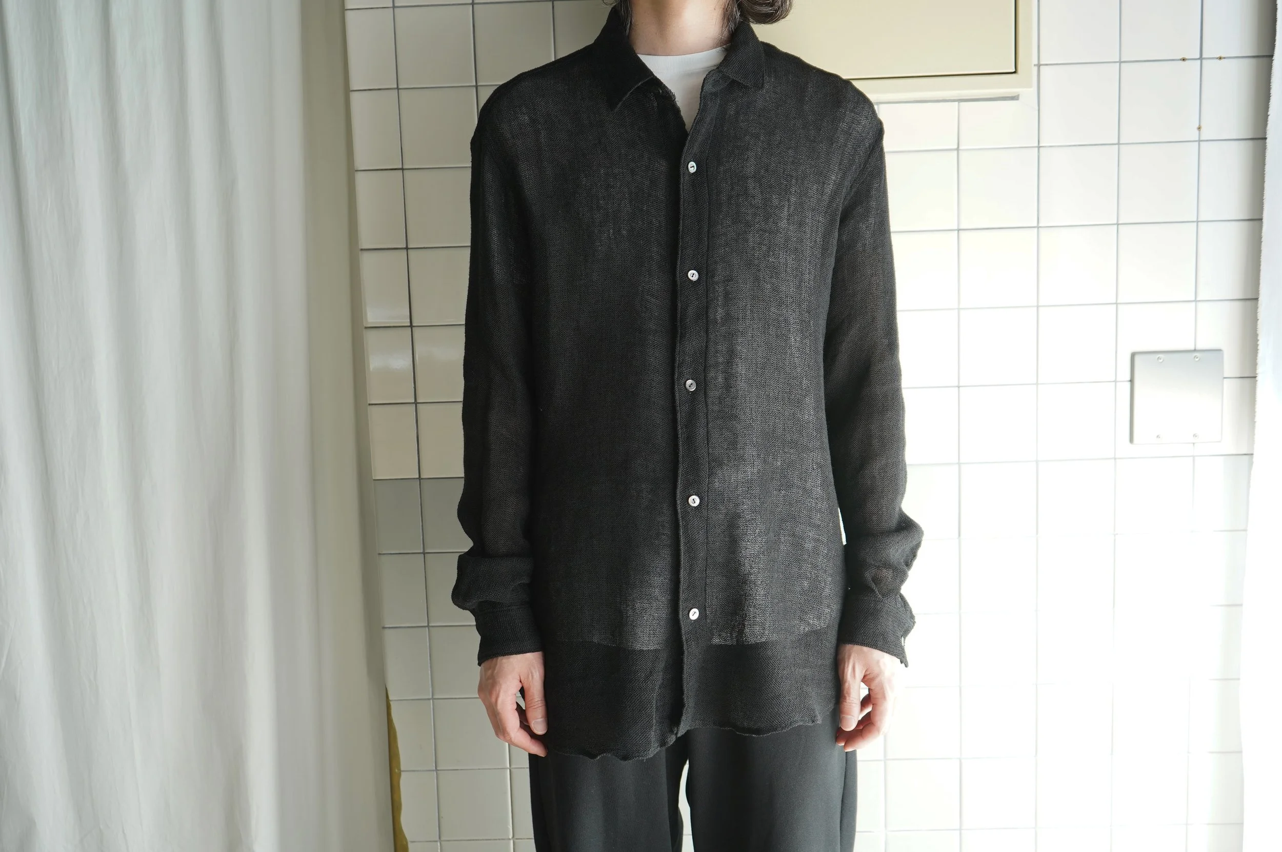 awasa : リネンメッシュ レギュラーカラーシャツ / ¥49,500-