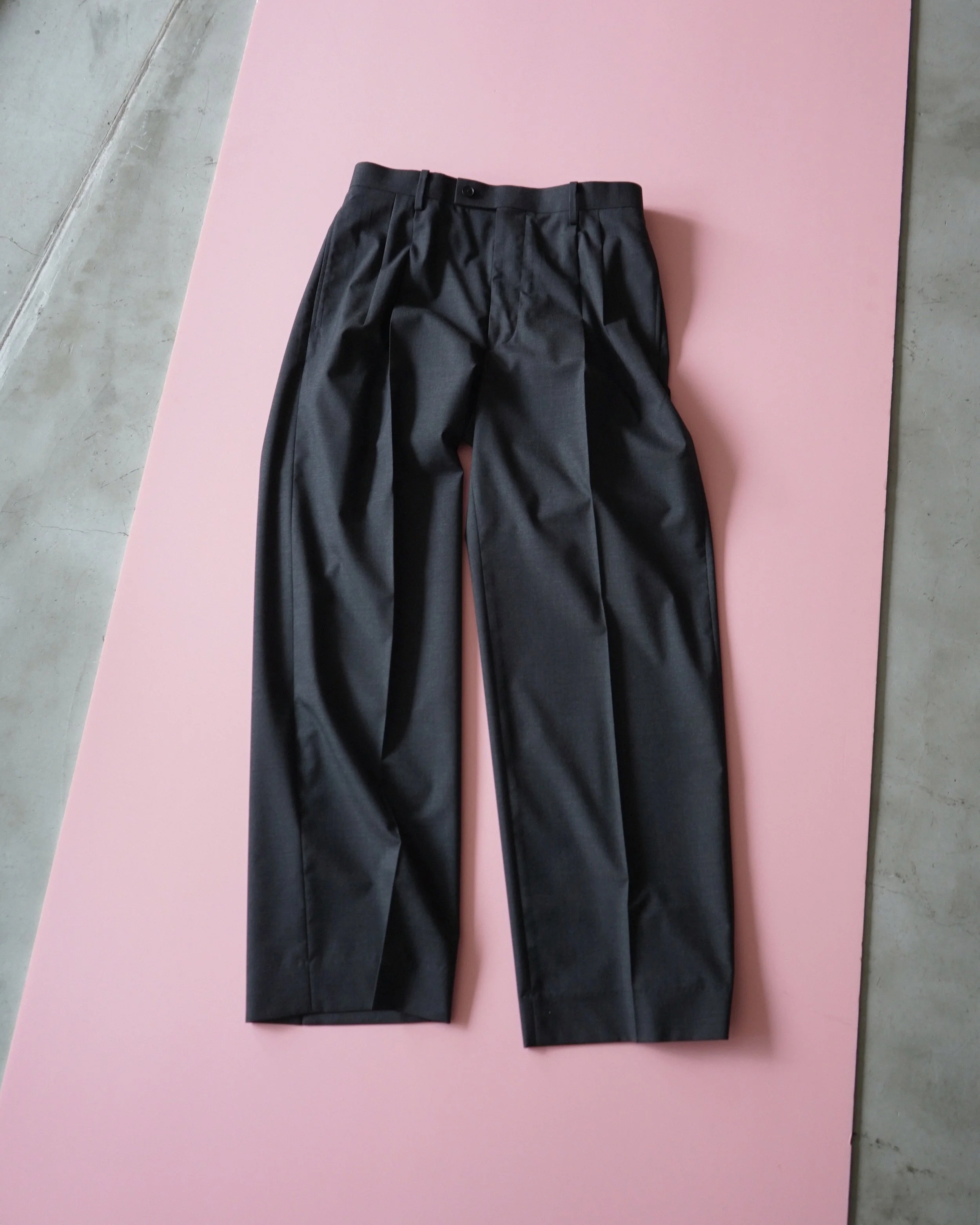 ULTRA FINE TROPICAL WOOL TWO-TUCK SLACKS / ¥52,800-